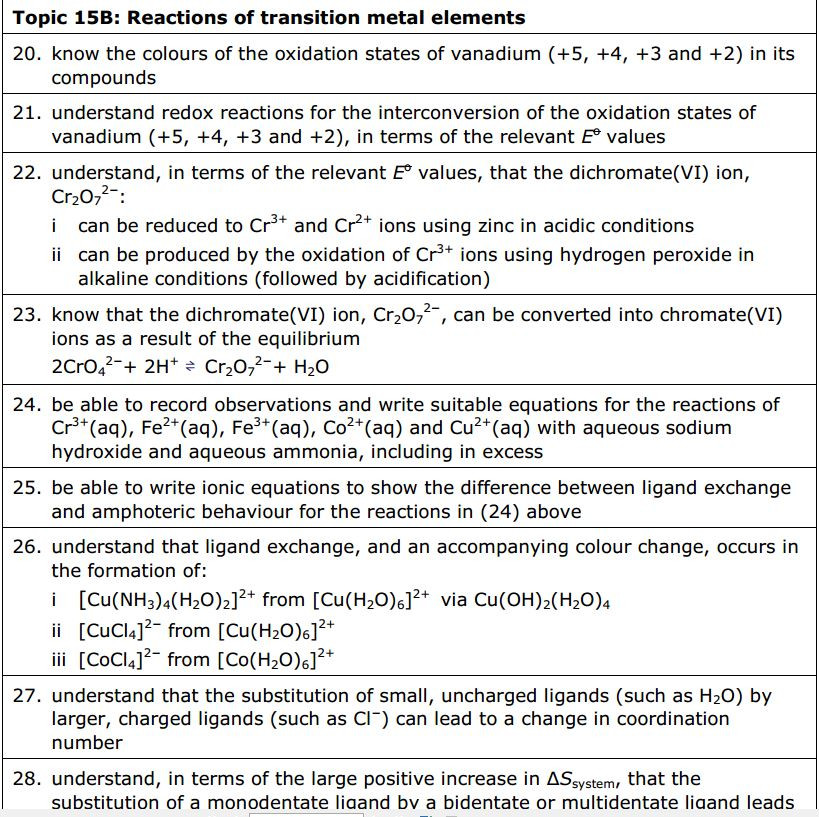 Transition metal ions and complex ions