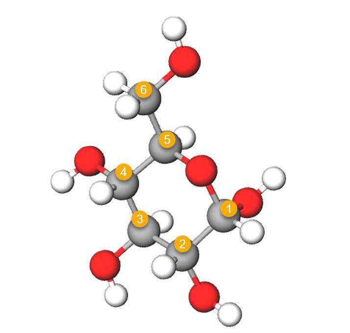 A molecule of alpha glucose. Rotate and zoom into the model to view it.