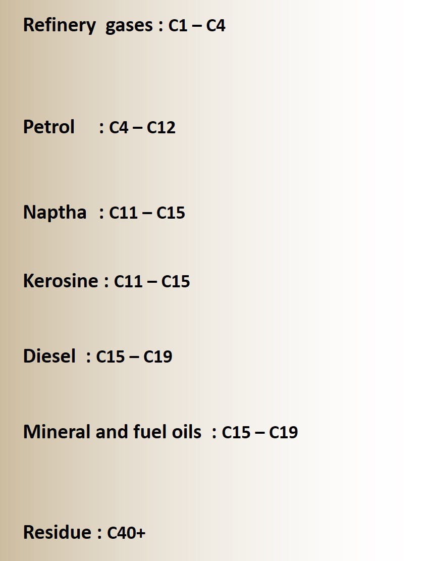 - 4.10 know the trend in colour, boiling point and viscosity of the main fractions