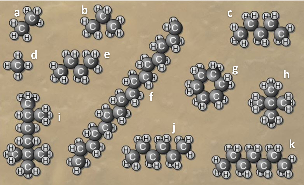 Study the image carefully. The molecules shown are all hydrocarbons. These molecules can all be found in crude oil. The precise composition of the crude oil mixture will vary depending upon where the crude oil comes from.