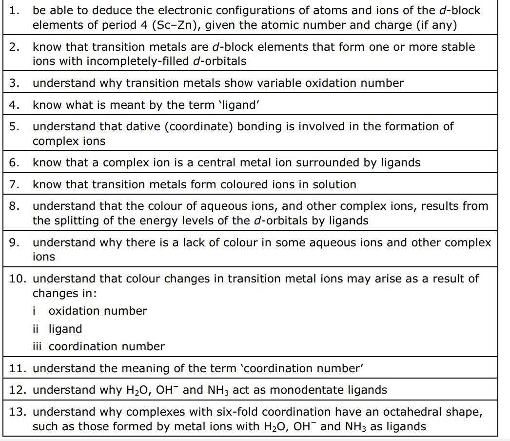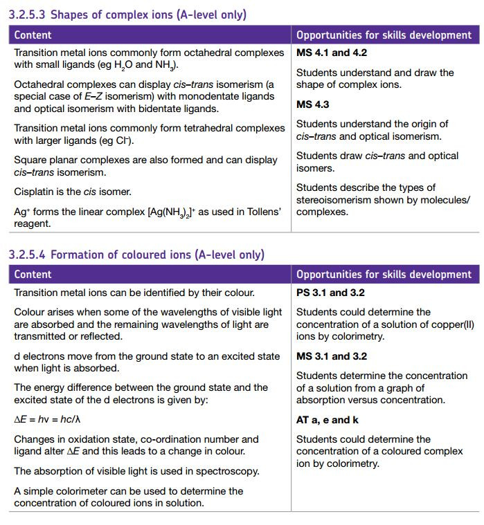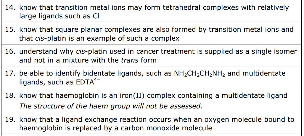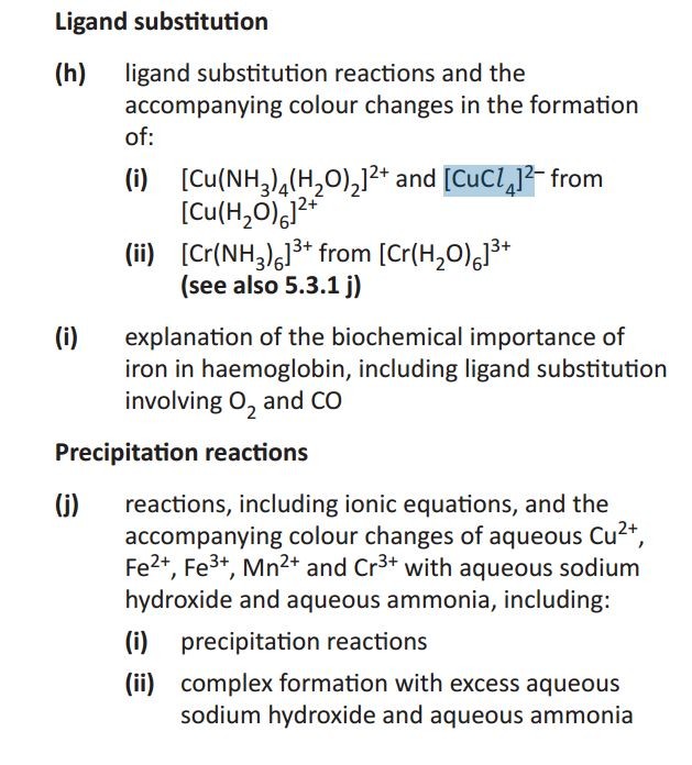 The colour produced by a transition metal ion will change if the ligand changes. These colour changes can be used to identify specific ions.