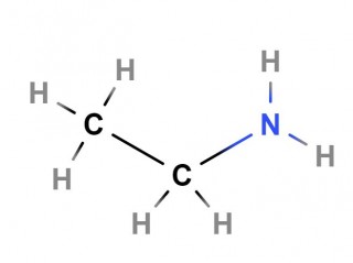 Molecule B. This is a simple aliphatic amine with two carbon atoms called ethylamine ( or ethanamine) . Ethylamine can be formed by the reaction of chloroethane with ammonia dissolved in ethanol.
