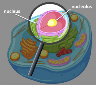 A membrane bound organelle containing the nucleolus and DNA (in a linear structure called chromosomes). As DNA contains the code for proteins and the Nucleolus makes the rRNA in ribosomes that assemble proteins, the Nucleus is called ' the control centre of the cell.' They are found only in EUKARYOTIC cells.
