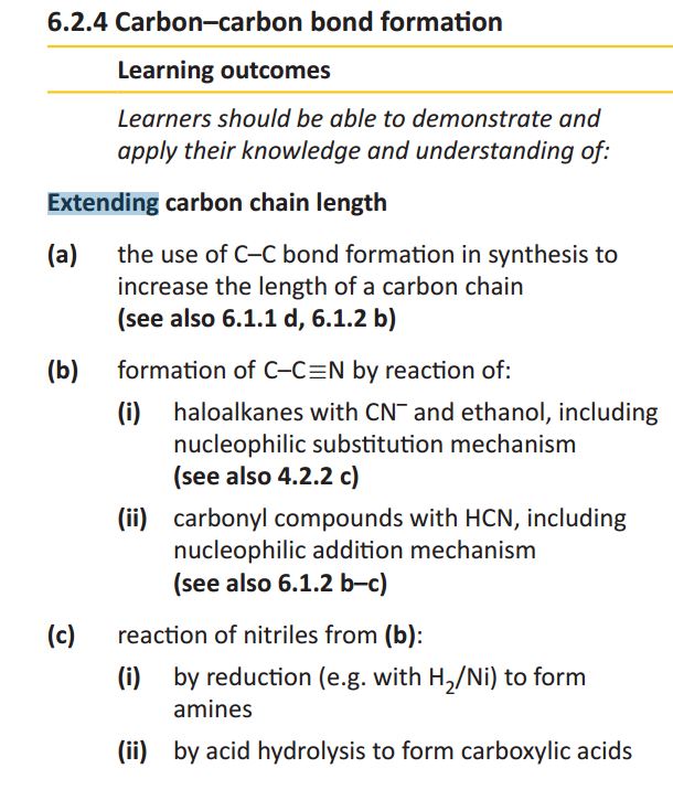 Sometimes in organic synthesis there is a need to extend the length of a carbon chain . This can be achieved in a few different ways: