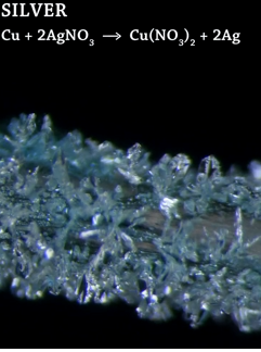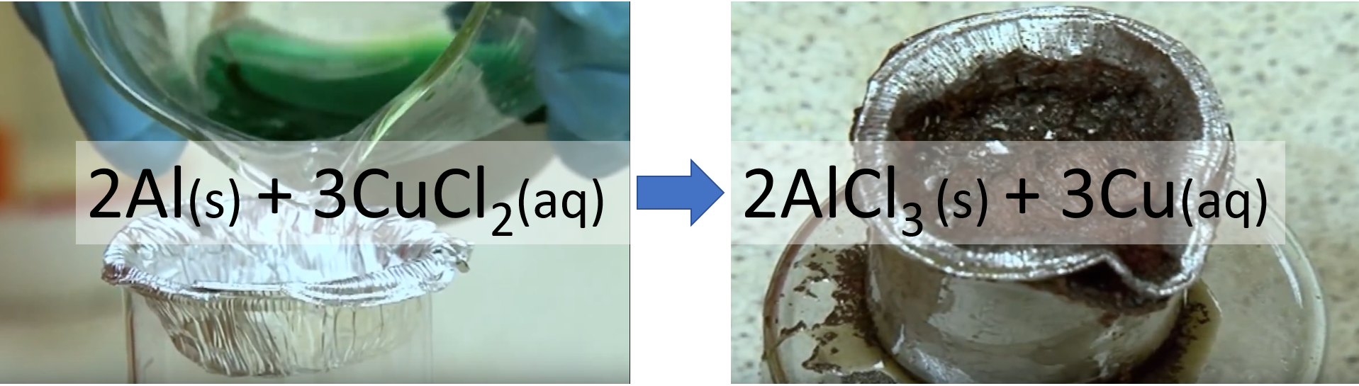 aluminum is more reactive than copper, therefore gives away its electrons. Copper ions are turned into copper atoms, and the aluminum atoms are turned into ions.