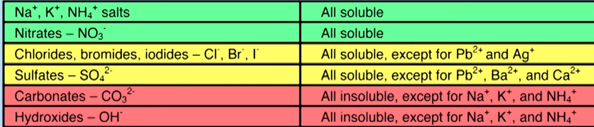 • 2.34 know the general rules for predicting the solubility of ionic compounds in water