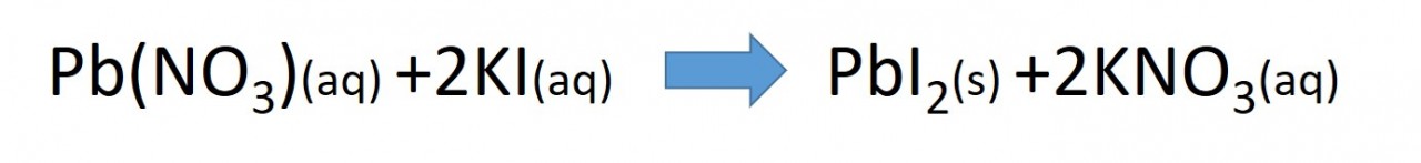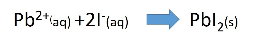 The video the first reaction shows nitrate reacting with potassium iodide solution - the result is a yellow precipitate of lead iodide. We can write the following equation: