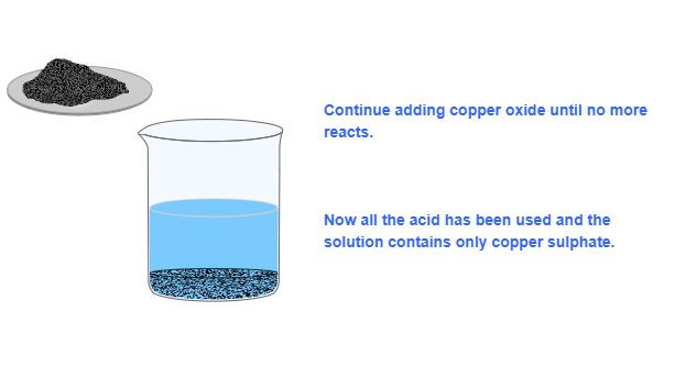 1. Add insoluble base to a volume of the acid (50cm3) in a beaker