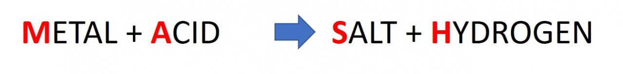 3. acid plus metal react to form a soluble salt plus hydrogen gas