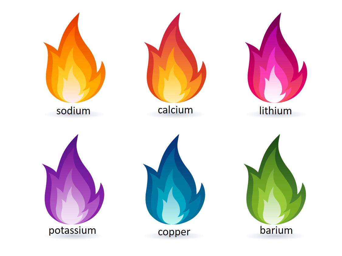 • 2.46 know the colours formed in flame tests for the cations: lithium, sodium, potassium, calcium, copper