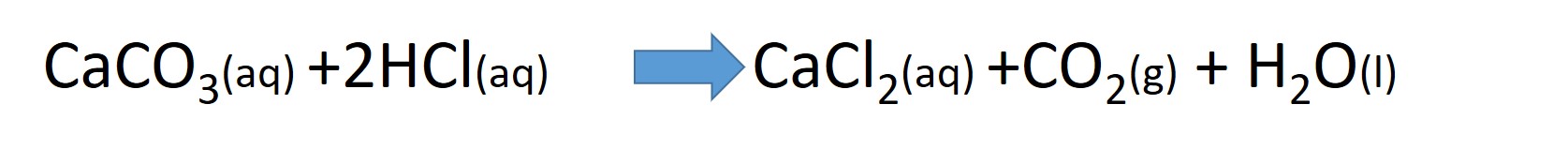Use the equation above and the fact that the reactants used in the video are calcium carbonate and hydrochloric acid to help you predict the full symbolic equation for the reaction in the video.
