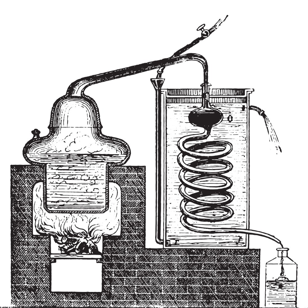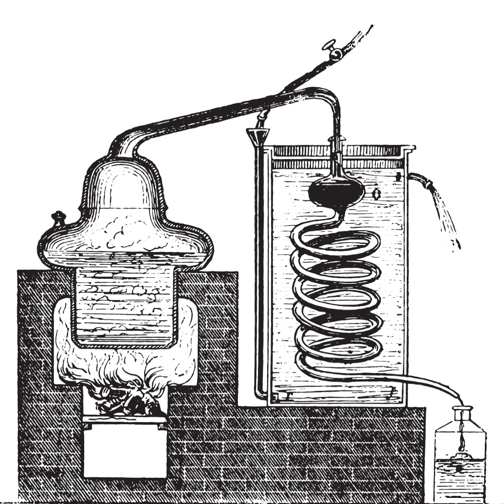 Distillation: the action of purifying a liquid by a process of heating and cooling