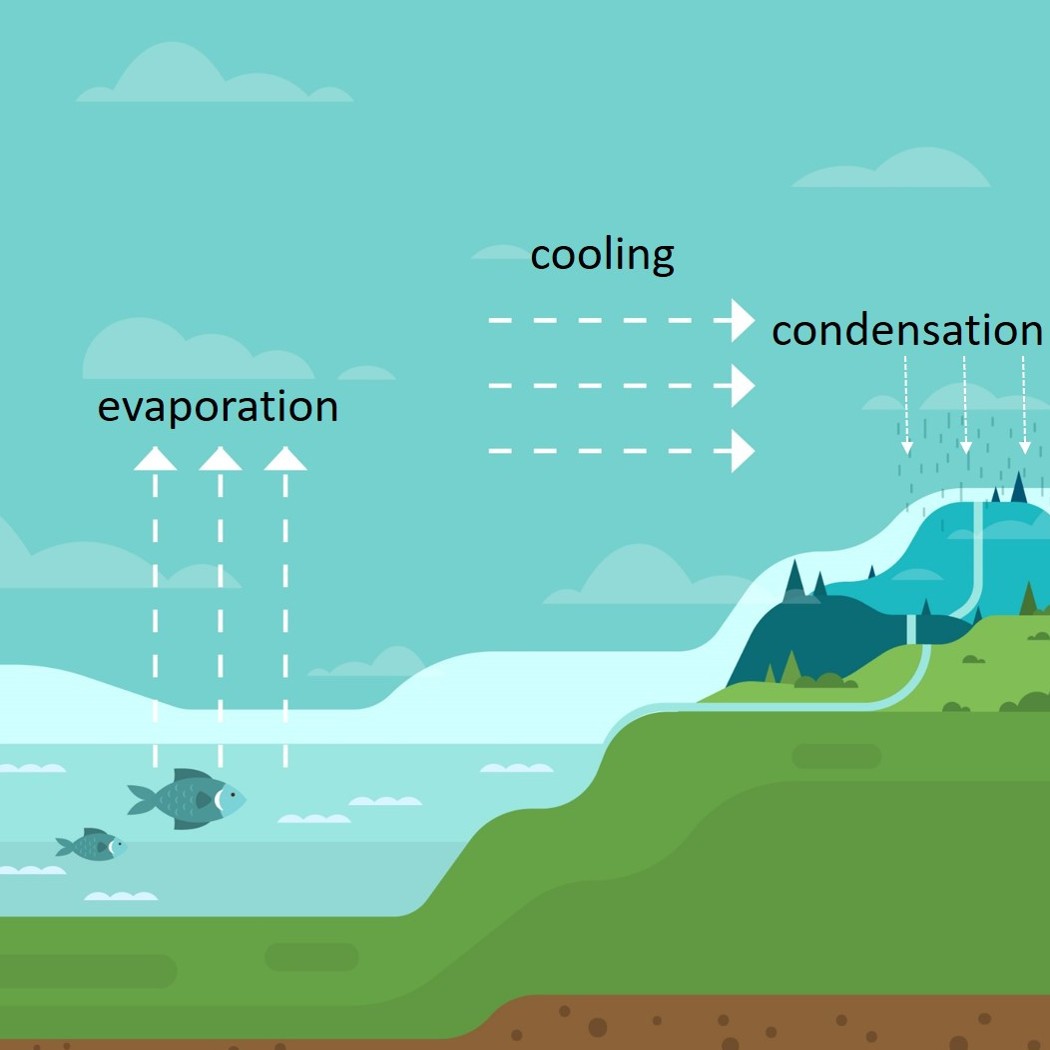 You will be very familiar with the ideas illustrated in this graphic explaining the water cycle. The continual evaporation of water ( the solvent) from the sea ( the solution) - followed by cooling and condensation of the water vapour - means that the water that falls on the land is "distilled" and free from the salt
