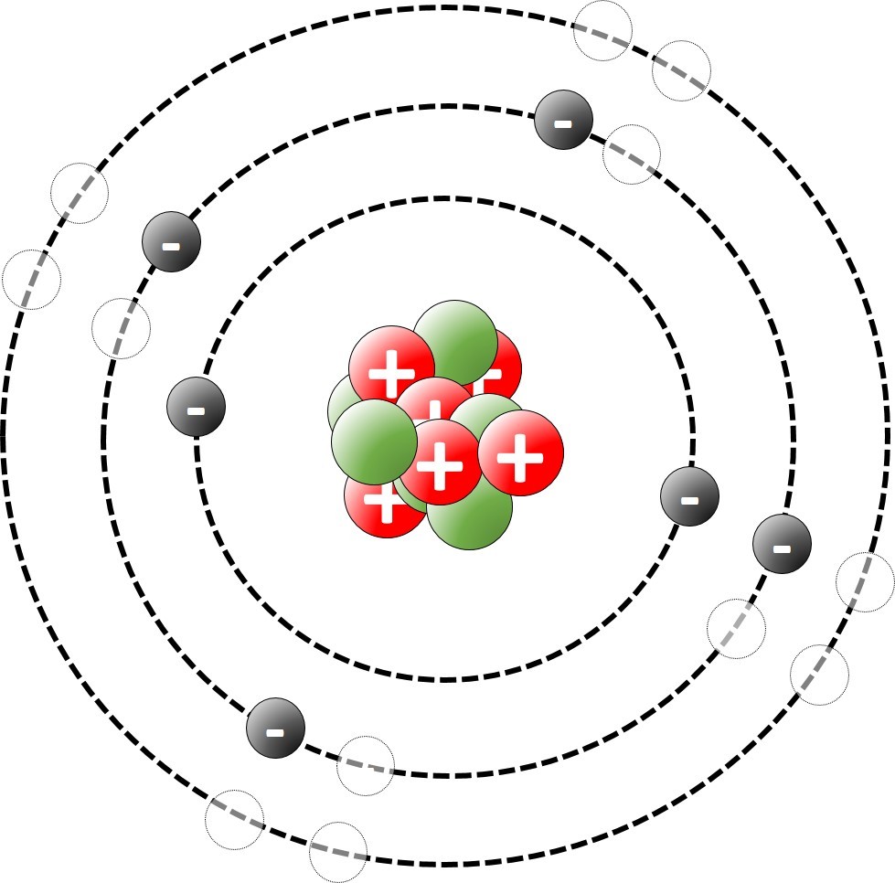 An orbital model of the atom shows electrons in orbit around the nucleus.