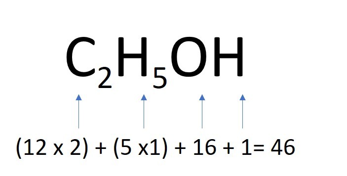 The mass of one mole of a compound can be calculated using the relative atomic masses of the component elements multiplied by the number of atoms shown in the formula.