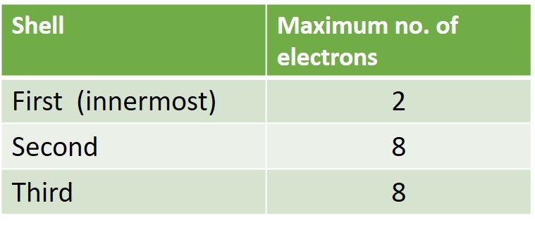 The electrons in an atom arrange themselves in shells ( or levels) around the nucleus. The electrons fill the innermost shells first . Each shell can contain a maximum number of electrons.