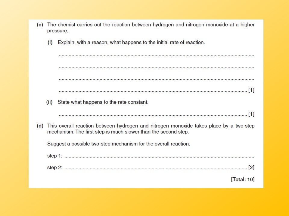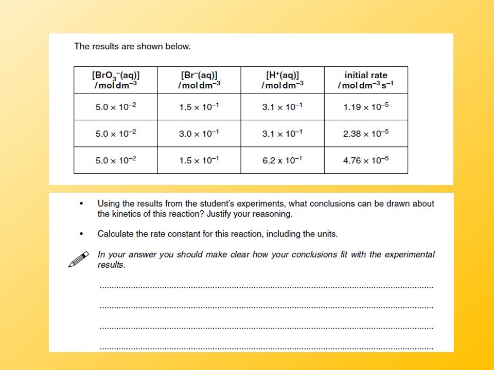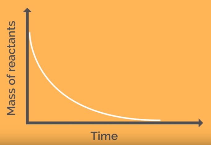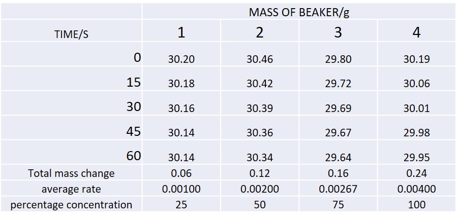 You could measure the mass of the reaction mixture vs time. This will give data as shown in the table. Looking at the data what can you say about how the rate of reaction changes as the reaction proceeds?